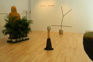 In an unlikely combination of objects, Max Garett compiles different visual languages into figures that not only span different cultures, but also different times. Using formal similarities to connect a wide variety of iconographic figures, Super Moment outlines an impetus to pair characters from ancient mythologies with those from a newer history-starting with the paintings found in the caves of Lascaux and ending with a garden purchased at Home Depot. History demonstrates similarities and crossovers between cultures, no matter the time or civilization. Repetition of forms and icons such as the Venus of Willendorf have been scattered throughout different parts of the world. Even Gods in Greek, Roman, and Norse mythology such as Zues, Juptier, and Oden all represent the same basic character in their respective cultures. The situations Max Garett orchestrates illustrate this fact. Works that examine the relationship between figures such as Christ the Redeemer in Rio de Janeiro and the snowman, create unique formal experiences that allow viewers to witness improbable objects.