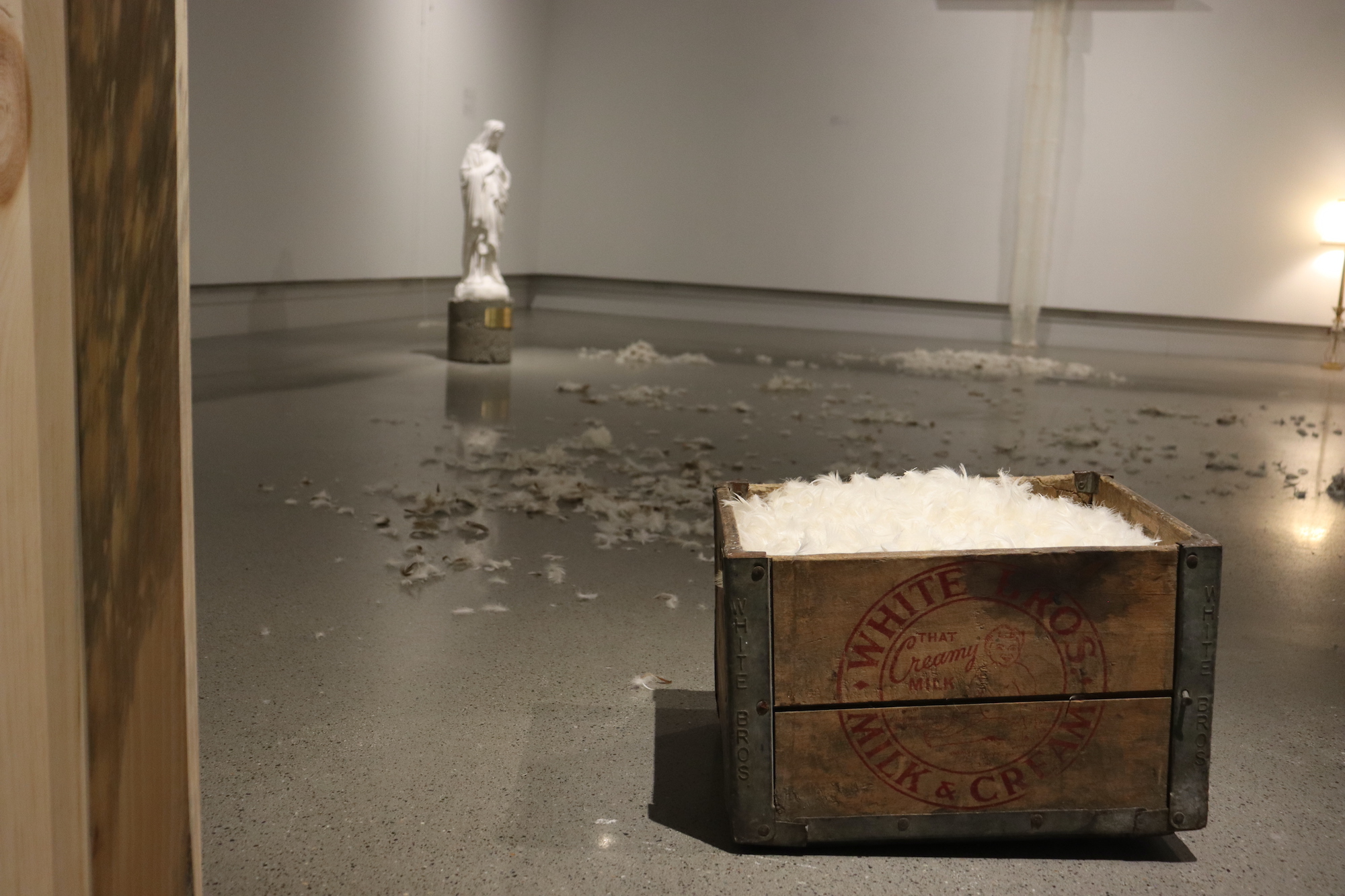 Sculptural objects and performing bodies function as sites for resistance and reclamation through the appropriation of the symbols, materials, and frameworks of systems in which the body is the primary focus of control. The rejection of the categorical identity of mother happens in different ways–ranging from the termination of a pregnancy to a postpartum reconstruction of selfhood. Though essential to each individual artist’s work this autobiographical distinction is withheld from the viewer, challenging the normative standards and dualistic approaches commonly applied to human sexuality and reproduction.