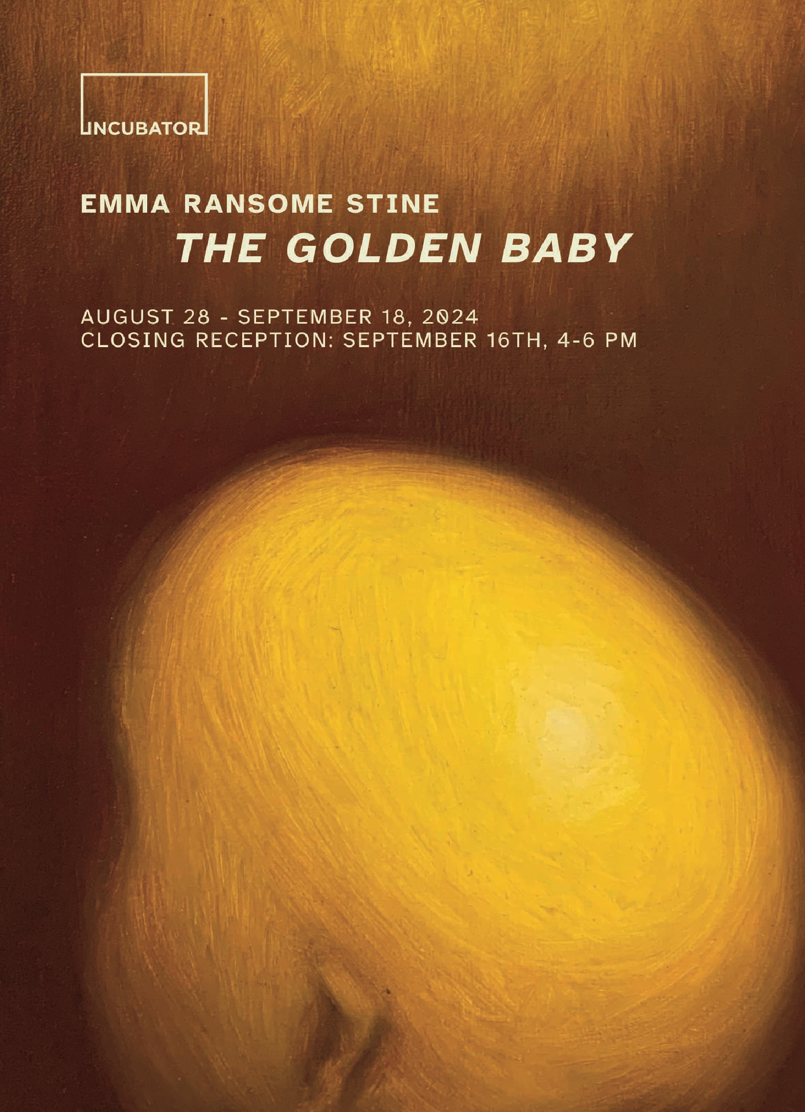The image of the “golden baby” is a distillation of the tension created by a watcher, or witness, wose relationship to its surroundings is often tinged with ambiguity. Through the figure’s repetition, recontextualization, and occasional absence, the “golden baby” takes on different meanings and roles, allowing the artist the chance to reflect on what exactly each image captures. This iterative process in turn creates space for Stine to examine her own varied and complex reactions to the subject matter.