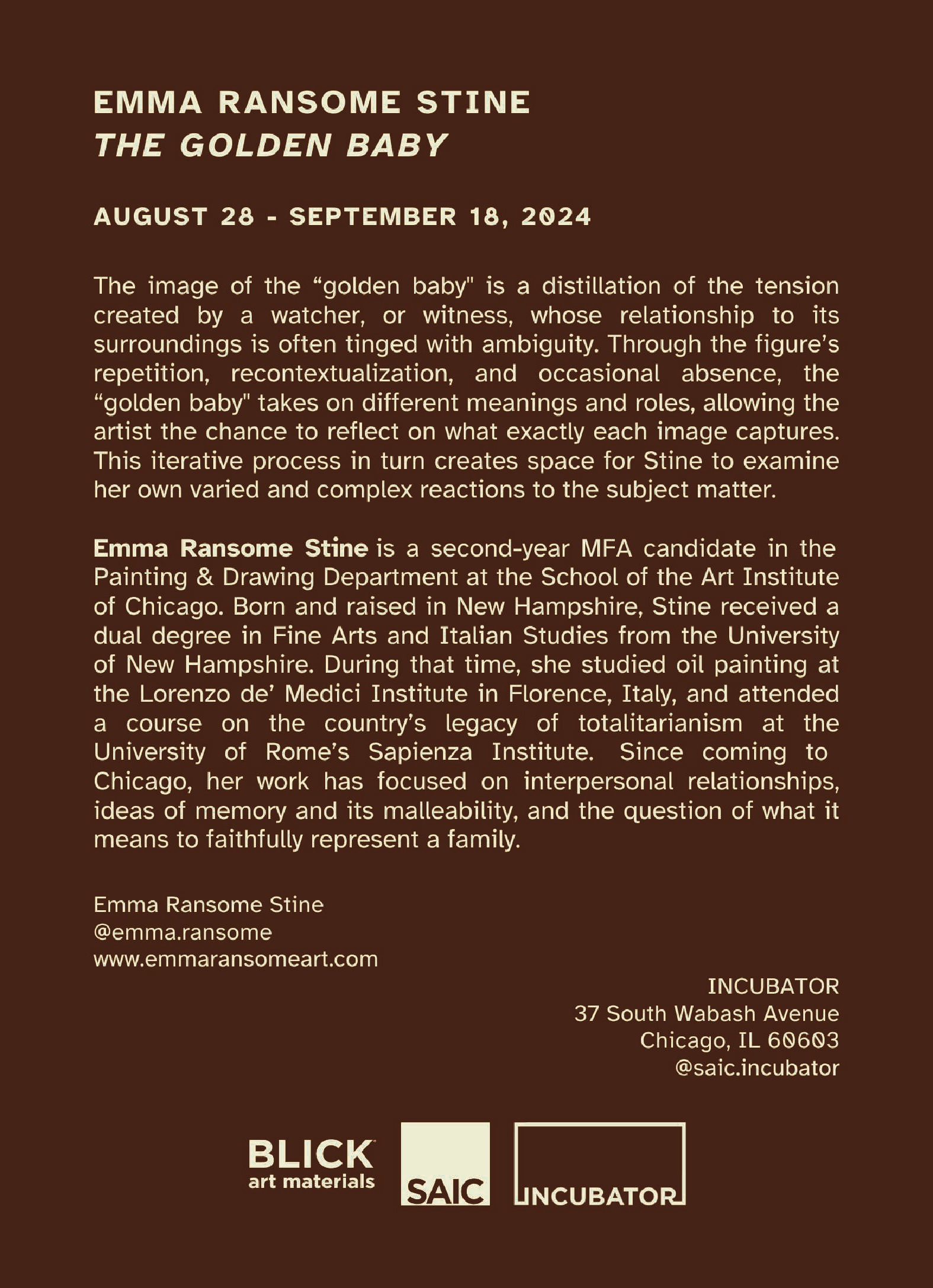 Exhibition Statement as Preserved in the INCUBATOR Archives: